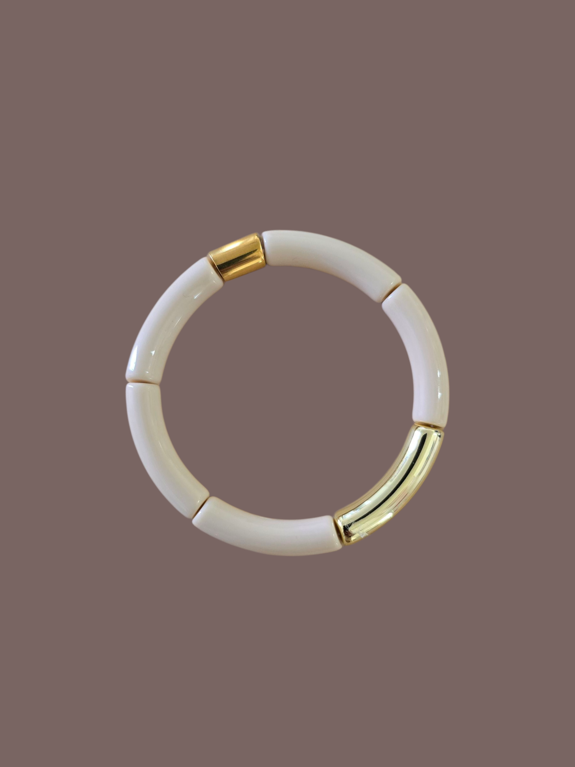 Les bracelets sont composés de 6 perles en acrylique et d'une perle gravée Lisso en acier doré.