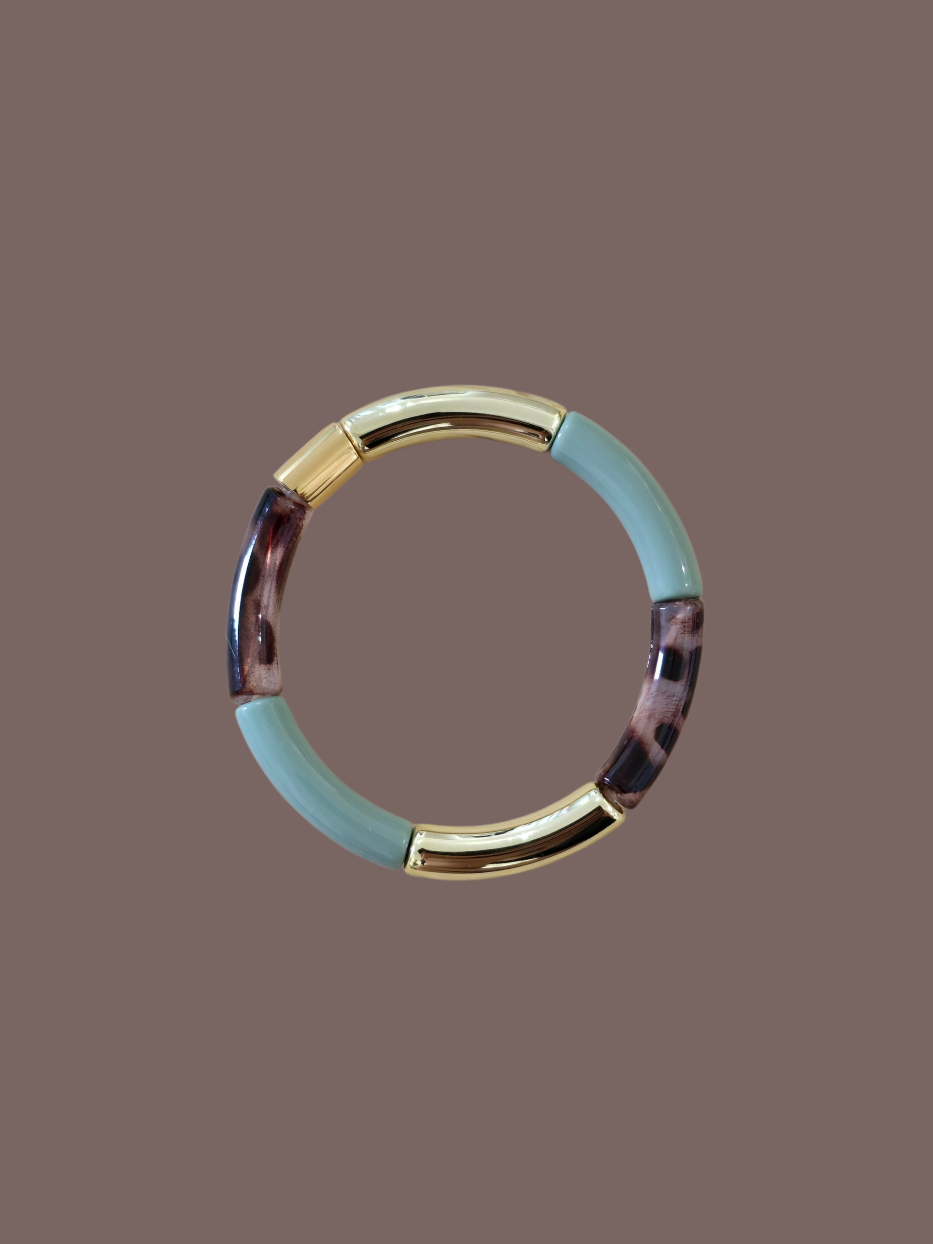Les bracelets sont composés de 6 perles en acrylique et d'une perle gravée Lisso en acier doré.