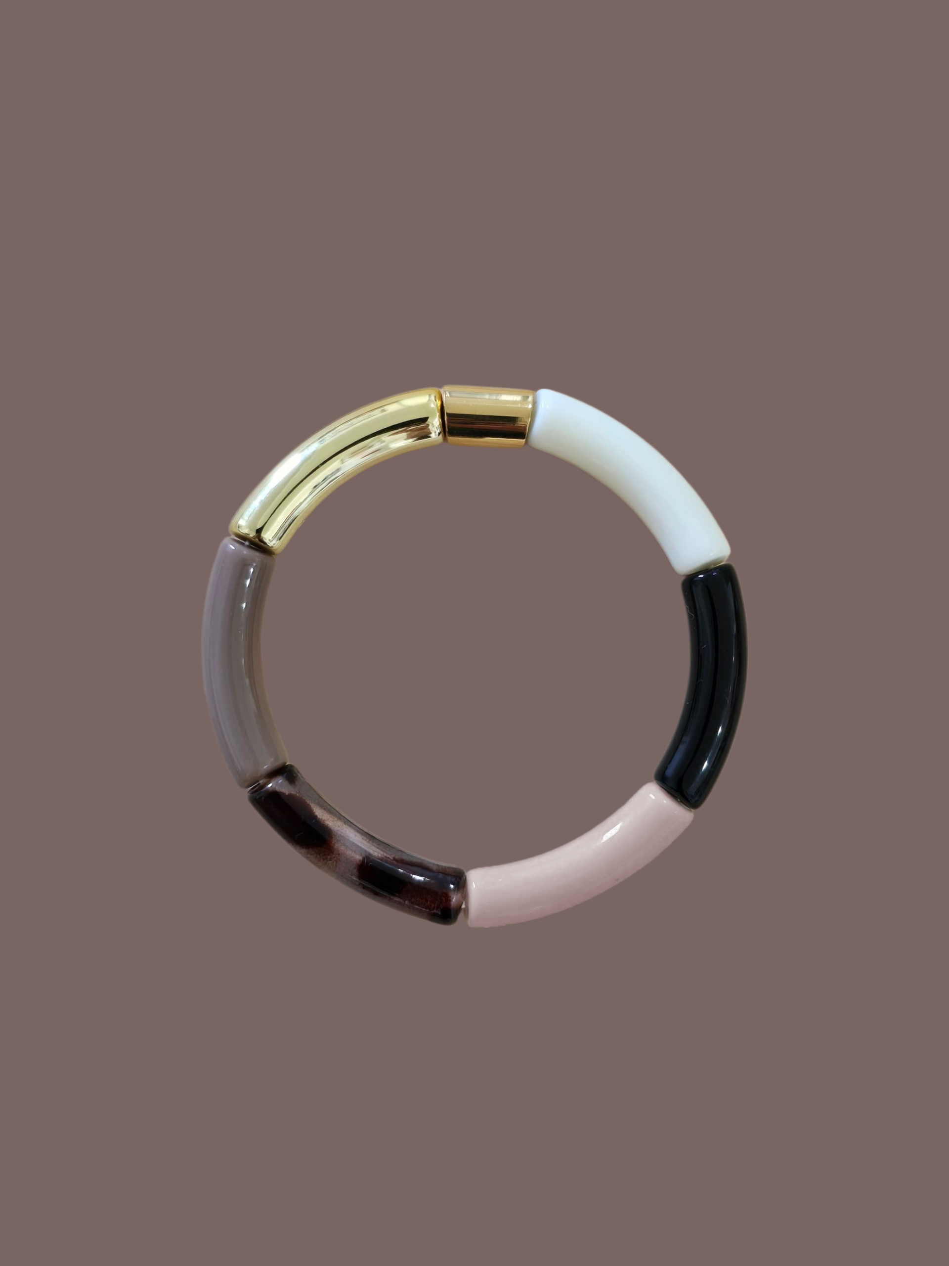 Les bracelets sont composés de 6 perles en acrylique et d'une perle gravée Lisso en acier doré.