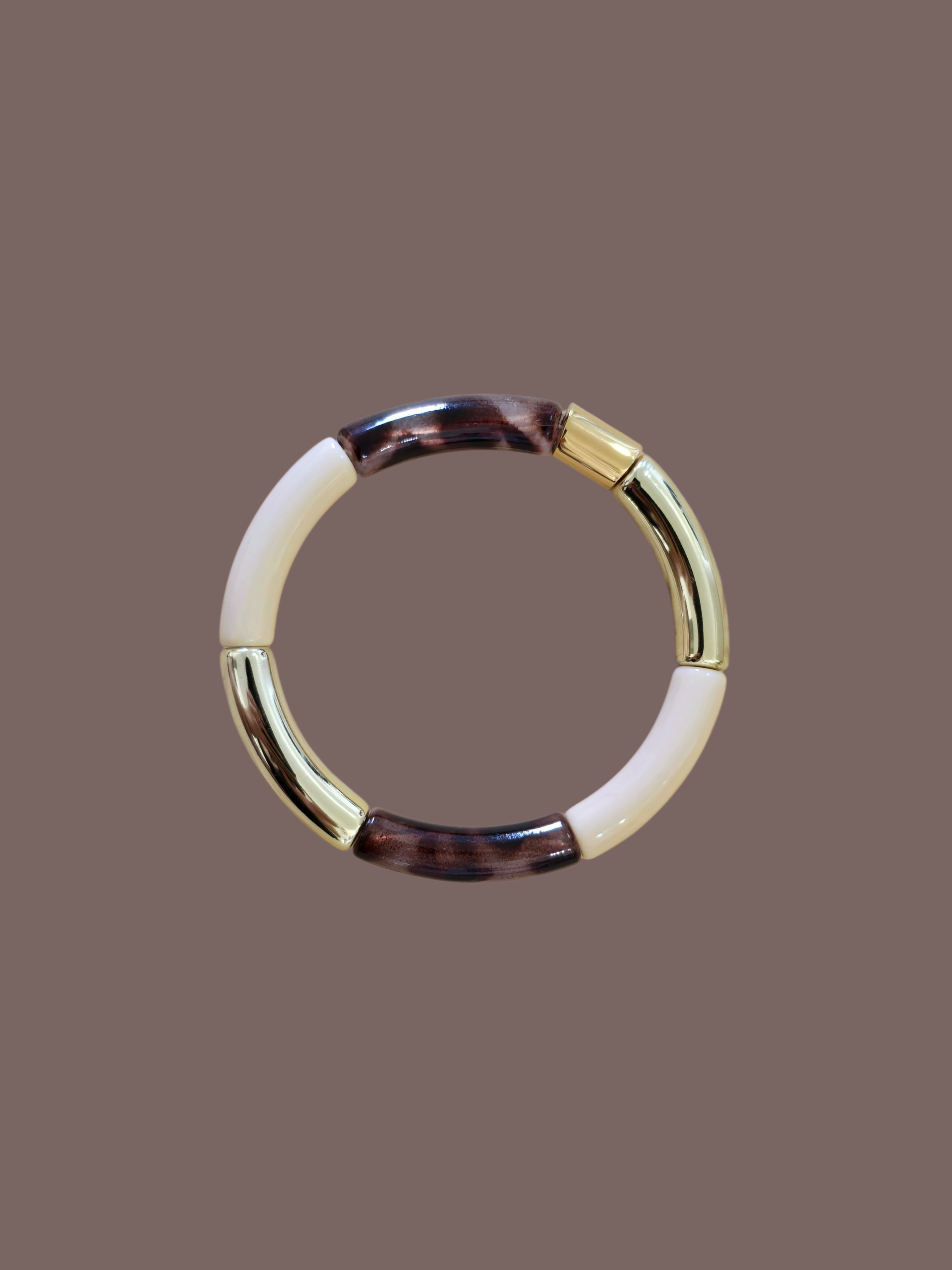 Les bracelets sont composés de 6 perles en acrylique et d'une perle gravée Lisso en acier doré.