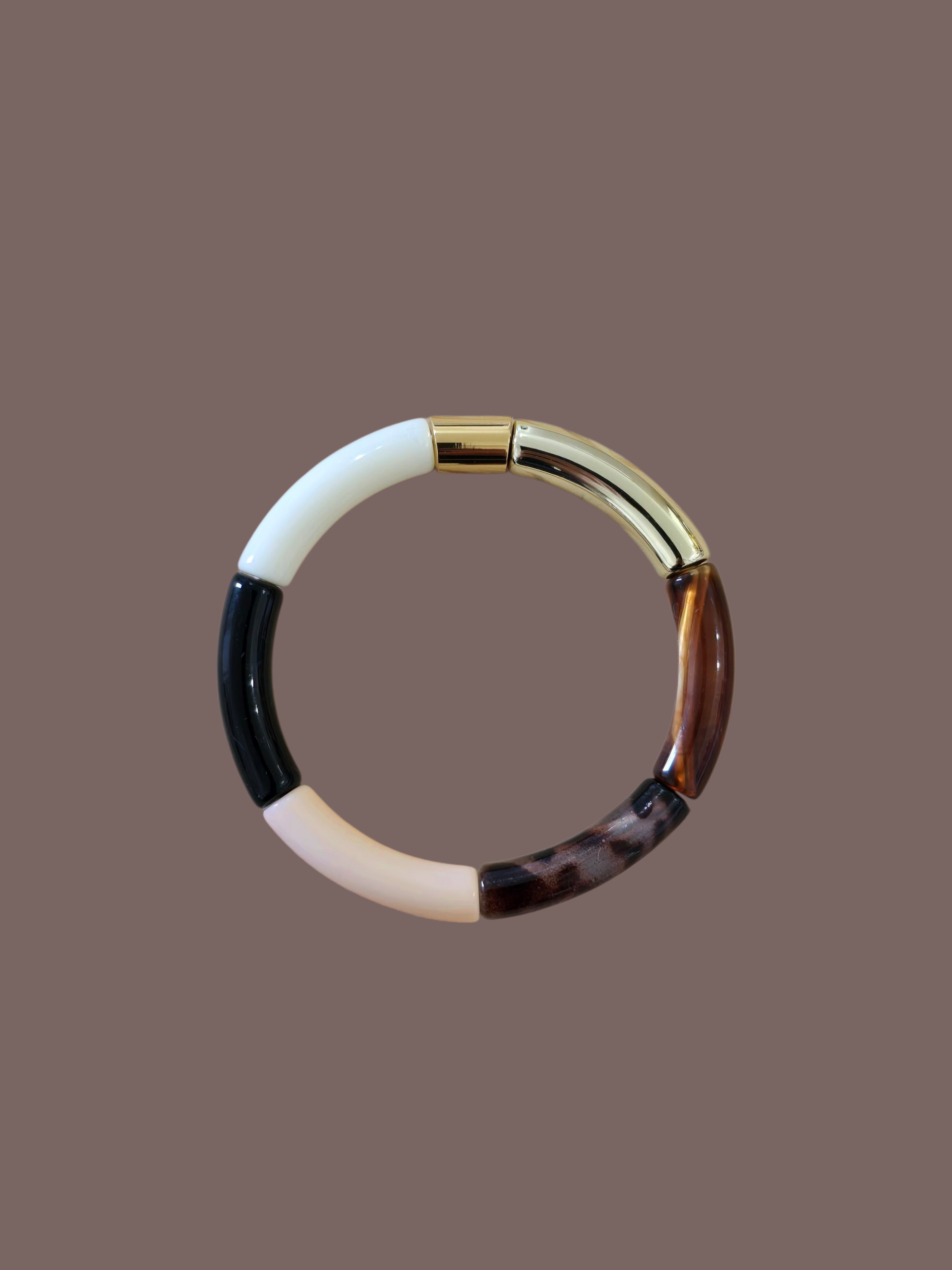 Les bracelets sont composés de 6 perles en acrylique et d'une perle gravée Lisso en acier doré.