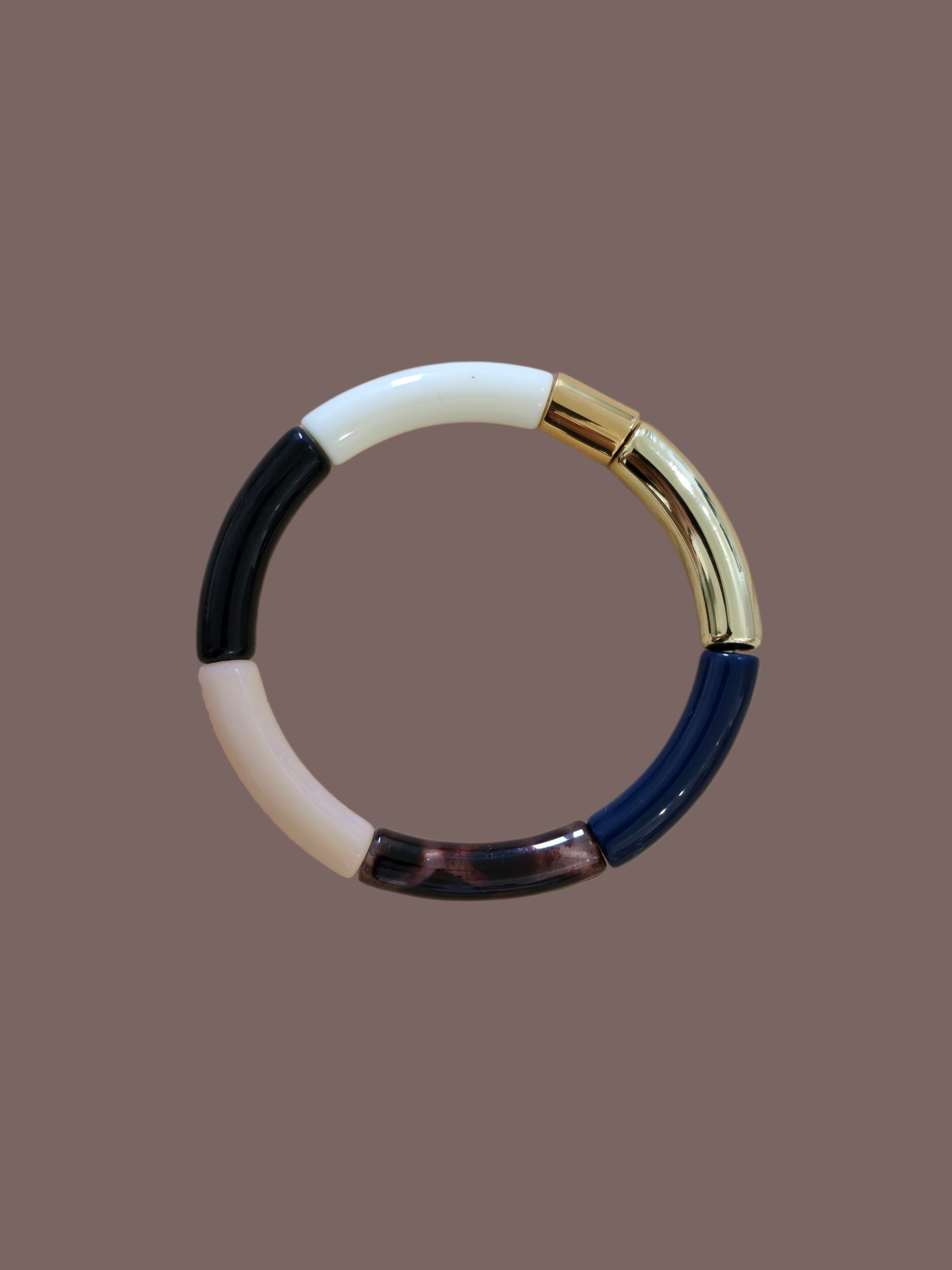 Les bracelets sont composés de 6 perles en acrylique et d'une perle gravée Lisso en acier doré.